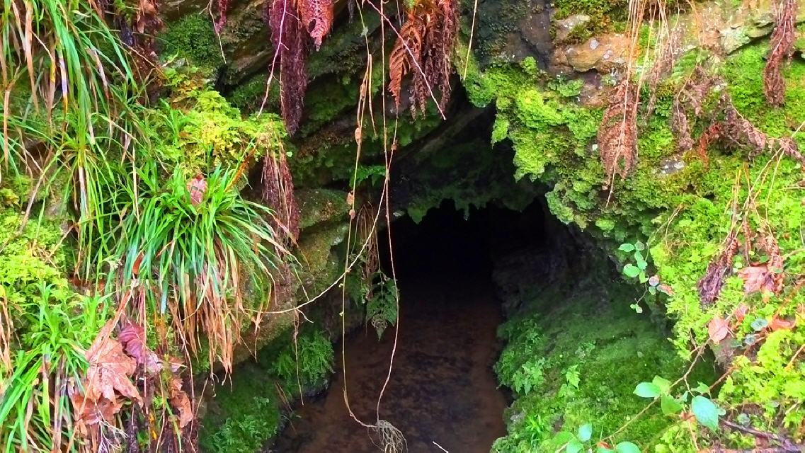 Station 7: Der Verlauf des Urgrabens vom 22 km entfernten Platten am Osthang des Kandel hatte seinen Grund, denn auf dieser Seite des Bergmassives fehlte das benötigte Wasser. An diesem Standort führt der heutige Wanderweg exakt auf der Trasse des ehemaligen Wassergrabens - und dieser musste damals kunstvoll um die Felsvorsprünge herumgeführt werden. Die Breite des Urgrabens betrug maximal einen halben Meter.