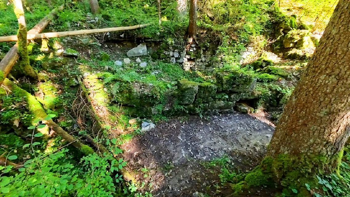 Bis 1873 war an der alten Handelsstraße eine Gipsmühle in Betrieb. Mit Hilfe der Wasserkraft wurden Getreide, das von der oberen Baar transportiert wurde, sowie Gips für Baumaterial und Düngemittel gemahlen. Der dafür benötigte Kalk wurde in Steinbrüchen im mittleren Muschelkalk weiter flussabwärts gewonnen. 1905 brach man die Gipsmühle und 1908 die Getreidemühle als letztes Gebäude ab. Von der Mühle sowie den weiteren Gebäuden der kleinen Siedlung sind heute nur noch Mauerreste zu sehen.