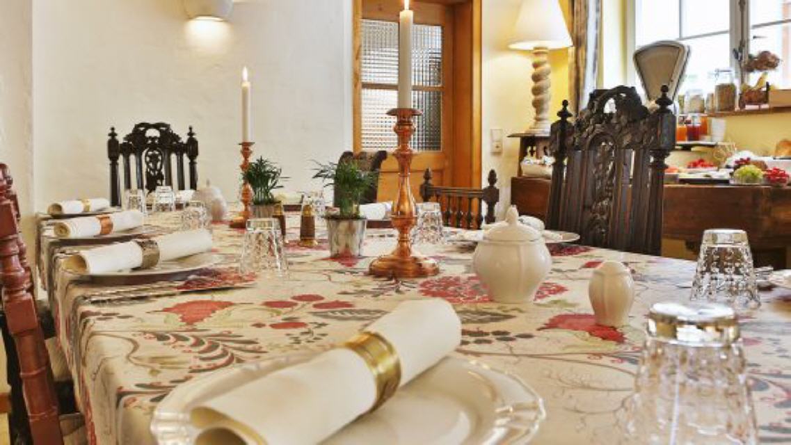 In unseren romantisch eingerichteten Zimmern fühlen Sie sich auf Anhieb wohl – hier können Sie in Ruhe neue Kraft tanken. Morgens richten wir Ihnen im Frühstücksraum ein Buffet mit allerlei französischen Leckereien an. Nehmen Sie an unserem großen Gemeinschaftstisch, an einem unserer kleinen Tische oder bei schönem Wetter auf unserer Terrasse Platz und schlemmen Sie nach Herzenslust.