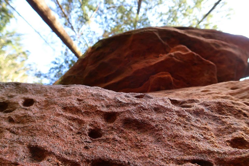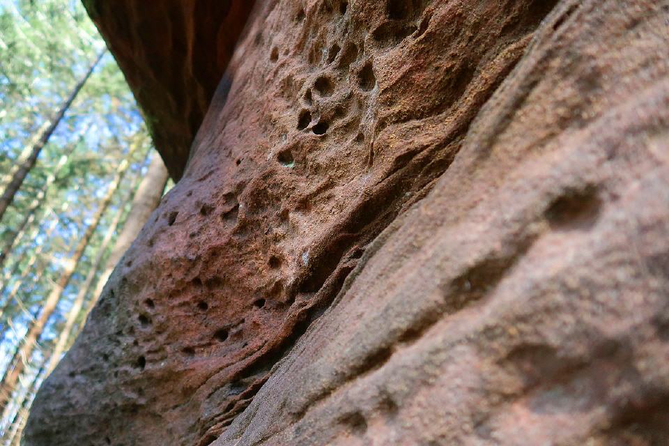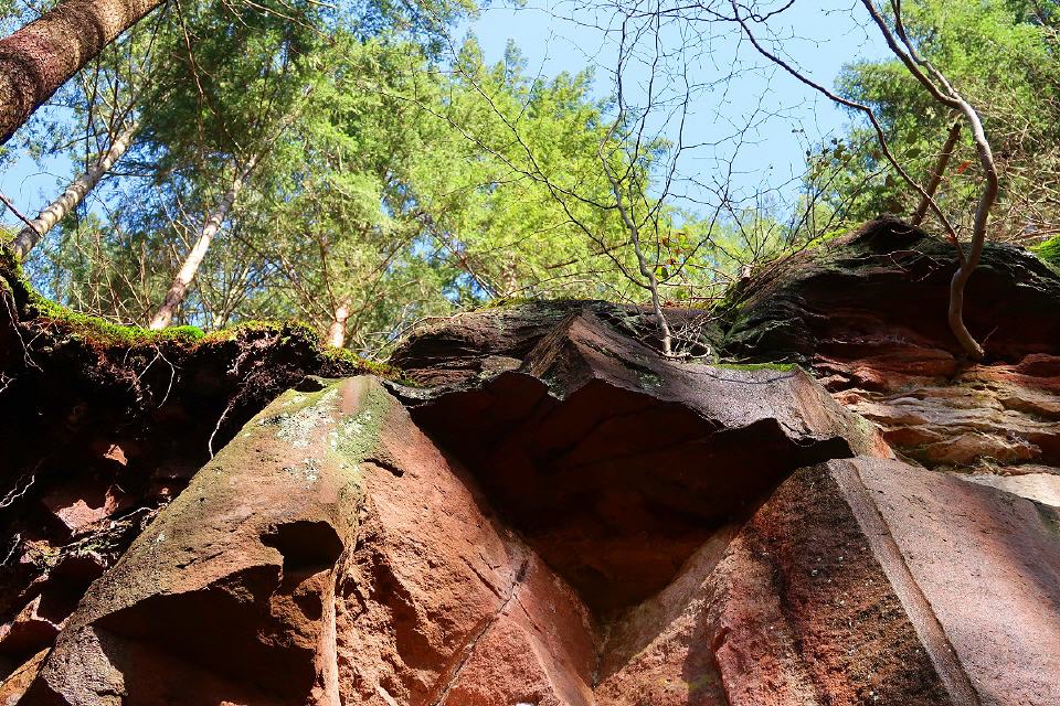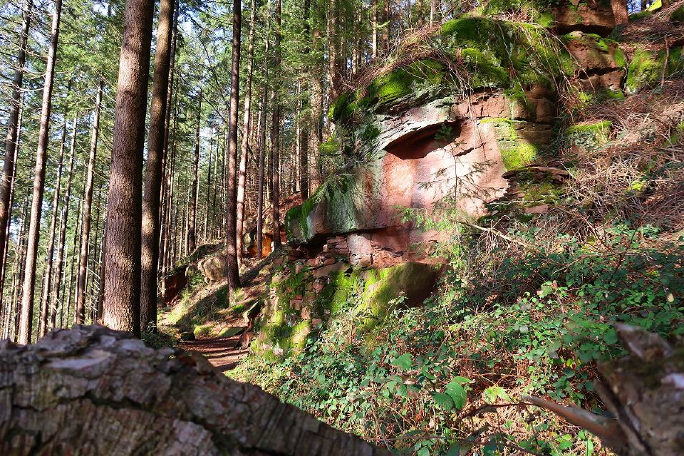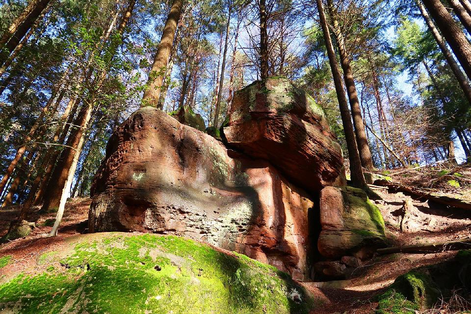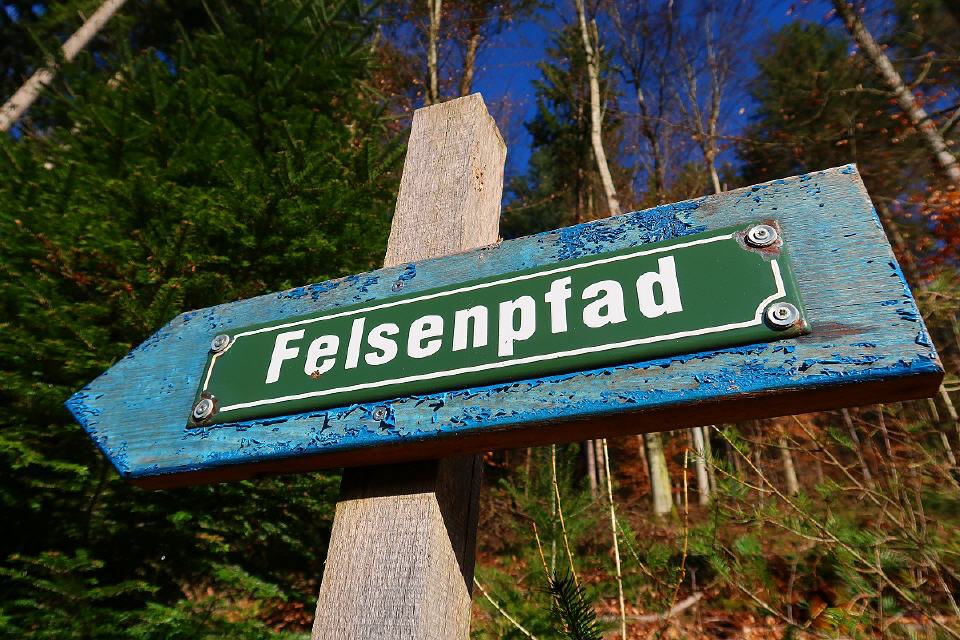In Bleichheim, einem Ortsteil von Herbolzheim im nördlichen Breisgau, gibt es eine abenteuerliche Wanderung für Familien. Der Felsenpfad startet am Wanderparkplatz gegenüber des Restaurant Hammerschmiede. Zu Beginn weisen blaue Hinweisschilder den Weg zum Einstieg des Pfades. Leicht ansteigend beginnt die Tour auf einem breiten Waldweg. Nach einigen Minuten Gehzeit zweigt ein kleiner Trampelpfad links ab. Immer weiter geht es nun stetig bergauf, bevor man an einer großen Holzpforte den Eingang zum eigentlichen Felsenpfad erblickt.