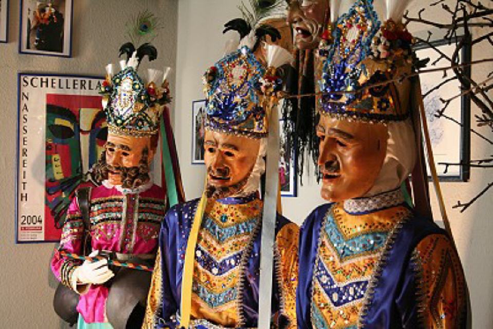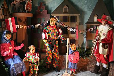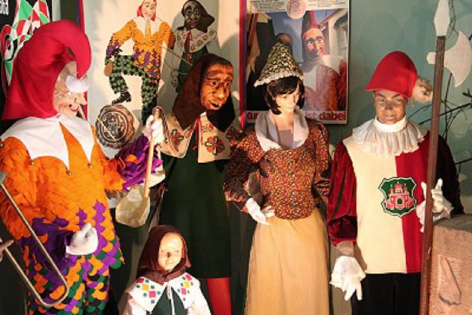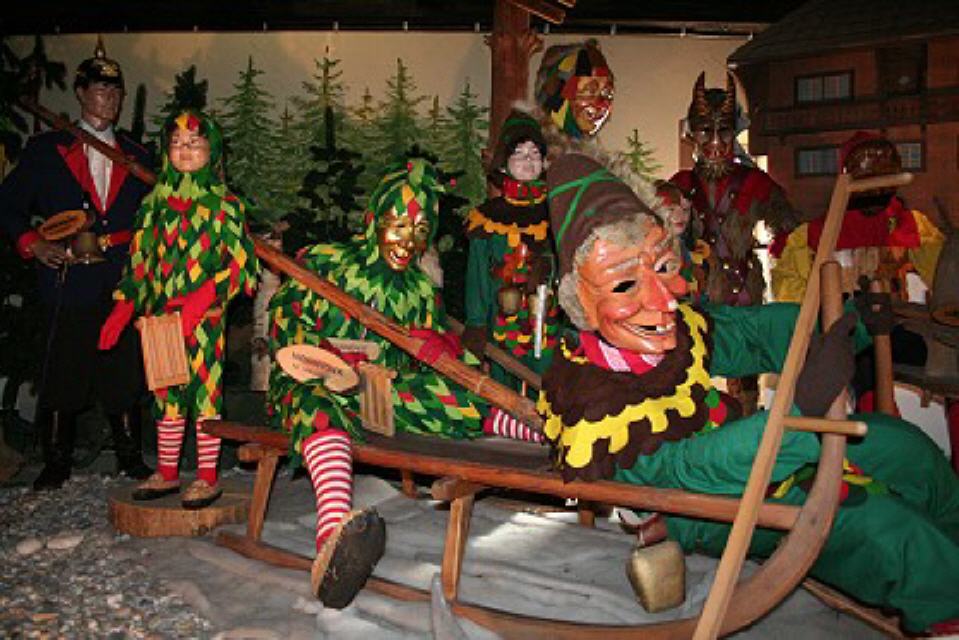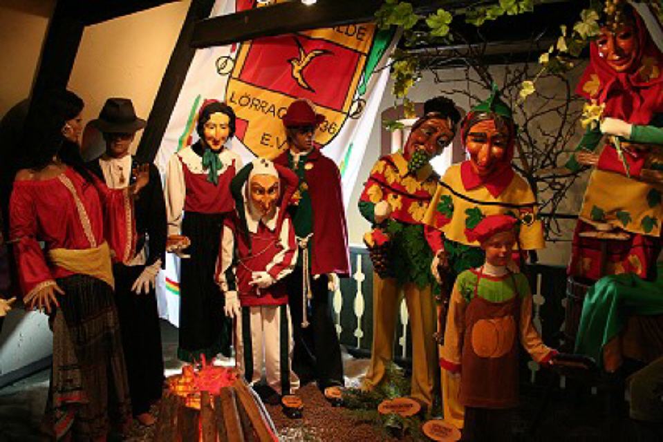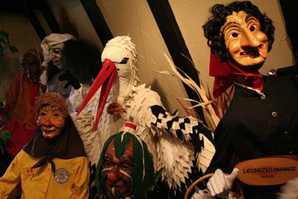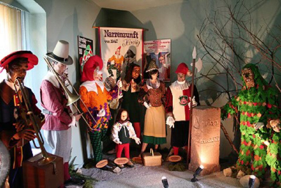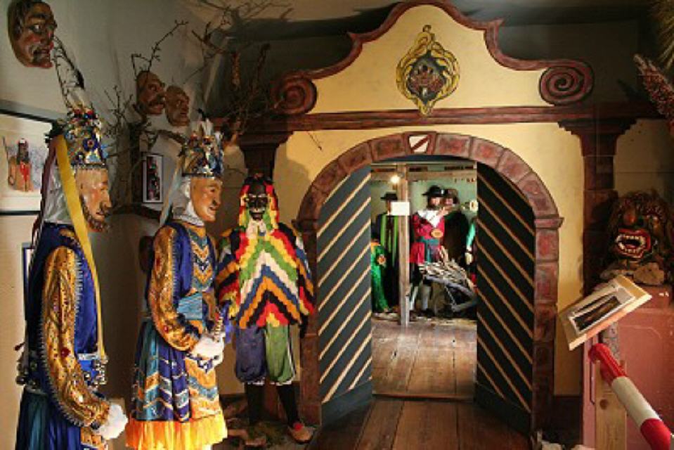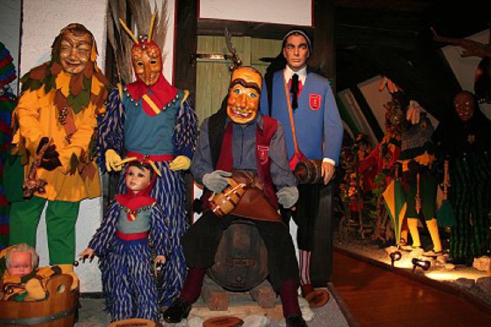 Im dritten Obergeschoss findet man die Vogtei Dreiländereck aus unserer Grenzregion zur Schweiz und dem Elsass. Ein bisschen erinnert man sich beim Betrachten an die Basler Fasnacht, wenn man die “Waggis” oder andere Narren aus dieser Landschaft sieht.