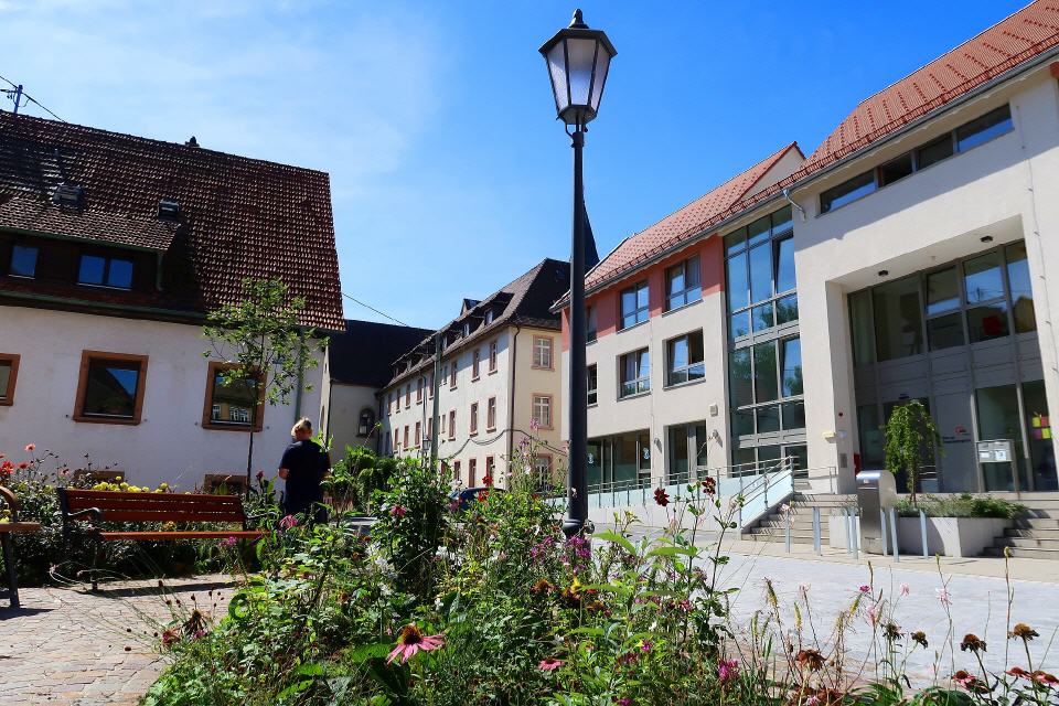 Rathaus Kenzingen, Hauptstraße: Der mit siebenstelligem gotischen Fensterband an der Hauptstraße gelegene Massivbau wurde 1520 errichtet. Nach erheblichen Kriegsbeschädigungen wurde es wieder aufgebaut und von 1965 bis 1967 erweitert