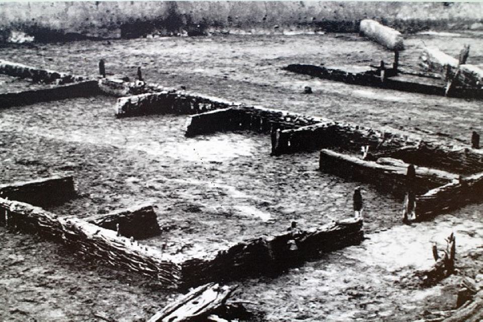 Aufgrund der gebrannten Lehmstücke mit Flechtwerkabdrücken auf einer Seite und Kalkputz auf der anderen Seite kann man davon ausgehen, dass die Pfostenbauten mit lehmverstrichenen Flechtwerkwänden versehen waren, wobei auf die Lehmwände noch ein Kalkputz aufgetragen wurde. Ein Gebäudegrundriss zeigte ungewöhnlich große Pfostengruben von bis zu 0,80 m Durchmesser. Durch die Anordnung der Pfosten ist dieser Grundriss mit den Wohnstallhäusern im nordgermanischen Küstengebiet zu vergleichen.