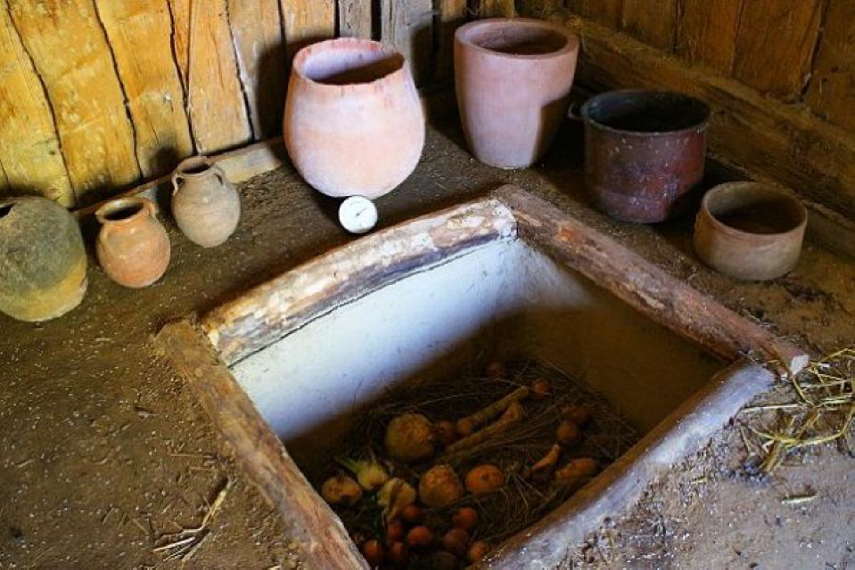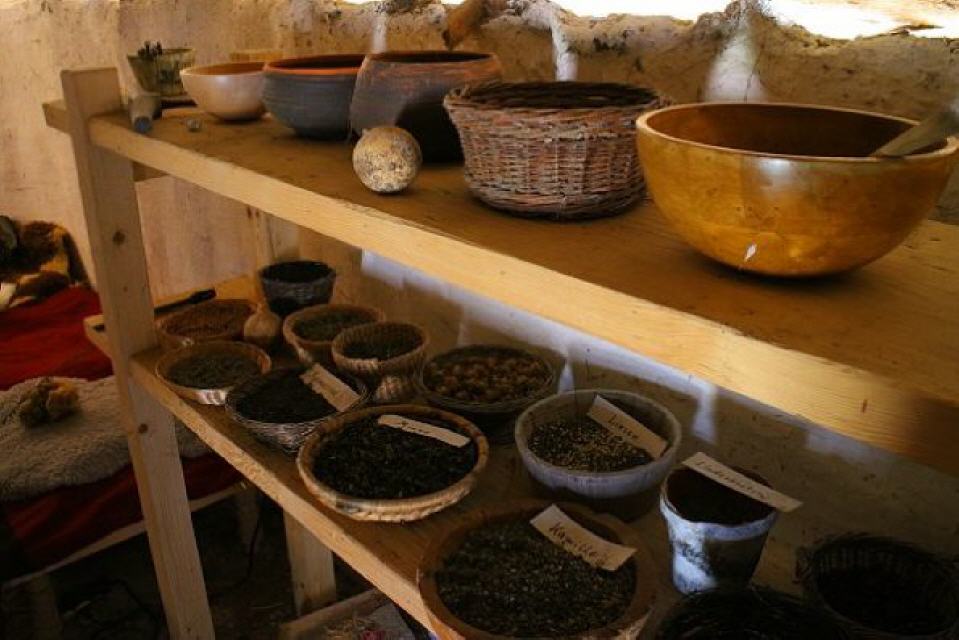 Der in Vörstetten ausgegrabene Haustyp entspricht dem auf der Feddersen Wierde (nördlich von Bremerhaven) ausgegrabenen Wohnstallhaus. ZumSpeichern von Feldfrüchten wie Heu oder ungedroschenem Getreide dientevermutlich ein kleiner runder Speicherbau von 3,5 m Durchmesser. Die Bödendieser Speicher hatten einen vom Erdboden abgehobenen Boden, um eine Durchlüftung zu gewährleisten.