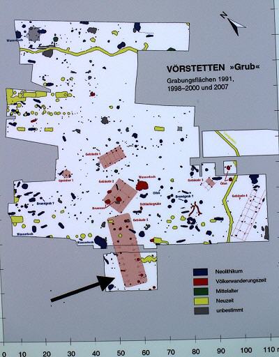Dabei sind die sechs großen Pfosten die dachtragenden Pfosten des Wohnbereiches, während die wesentlich kleineren Pfosten der Außenwände nur vereinzelt erhalten sind. Der Stallteil liegt größtenteils in dem zuletzt ausgegrabenen Bereich. Die Grabungsbefunde stützen die Hypothese, dass die frühen Alamannen nicht nur – wie bekannt – aus dem Elbe-Oder-Raum zugewandert sind, sondern auch aus dem nordgermanischen Küstenraum kamen.