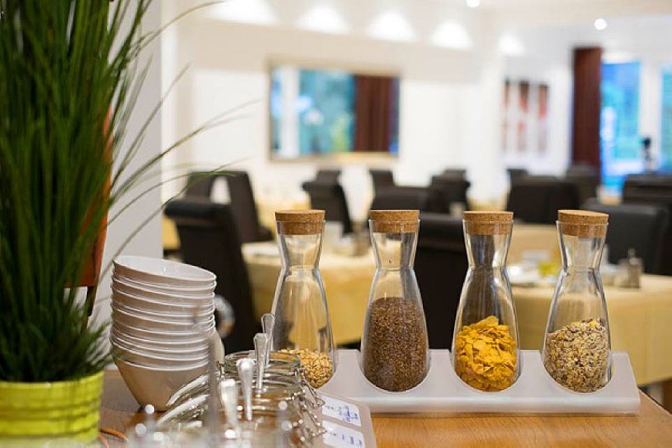 In unserem Restaurant bieten wir für Hotelgäste Halbpension an. Täglich werden Sie mit abwechslungsreichen Gerichten verwöhnt. Bei der Auswahl steht immer die Regionalität und die Frische im Vordergrund. Wir servieren Ihre Halbpension in unserem hellen und modernen Speiseraum. Selbsverständlich halten wir auch eine reichhaltige Getränkeauswahl für Sie bereit.