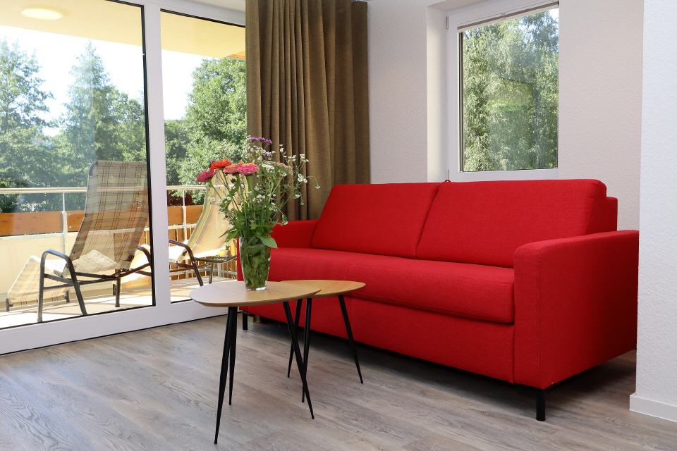 - Barrierefreies Einzeimmer "Deluxe", 43 qm, im Sonnenflügel mit Badezimmer, teilw. mit Doppelwaschbecken, Dusche, Haarfön, Kosmetikspiegel, WC, Telefon, WLAN (kostenfrei), Sat-TV, Minibar, Safe, gemütliche Wohnecke, Terrasse oder Südbalkon mit herrlichem Ausblick zu den Schwarzwaldbergen ab 77 €