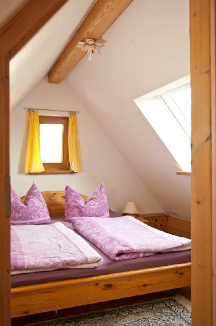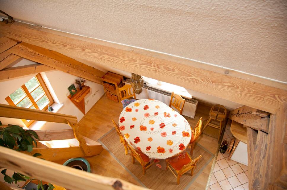 Sich Ruhe gönnen... bei uns im liebevoll baubiologisch restaurierten, über 200 Jahre alten Natursteinhaus mit hellen 2-Etagen-Wohnungen, den Balkonen, Vollholzküchen, Kork- und Holzparkettböden. Idyllisch am Südhangwaldrand gelegen ist es perfekt für Wanderungen vor Ort, zum Entspannen am Teich, der Feuerstelle (mit Schafen und Katze) dem Spielplatz, Rutsche, Schaukel und großem Trampolin. Hier bieten wir 2 Ferienwohnungen. Sie liegen in unserem Haus (unsere Wohnung ist im Erdgeschoss). Die "kleine Wohnung" liegt im ersten Stock und die "große Wohnung" im zweiten (ausgebauter Dachstuhl). Sie sind selbstverständlich komplett eingerichtet.