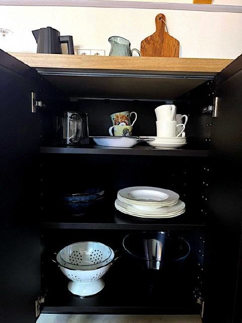 Es verfügt außerdem über eine Küchenzeile, die mit einer Spülmaschine, einem Kühlschrank und vielen alltäglichen Utensilien ausgestattet ist (hochwertiger Alessi Toaster und Wasserkocher, Rosenthal Geschirr, Besteck und mehr) sowie einer Kaffeemaschine.