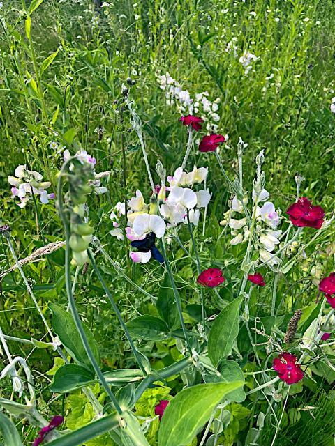 Im großen Obstgarten gibt es zahlreiche Rückzugsorte im Grünen für unsere Gäste.