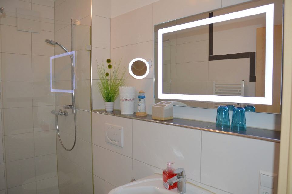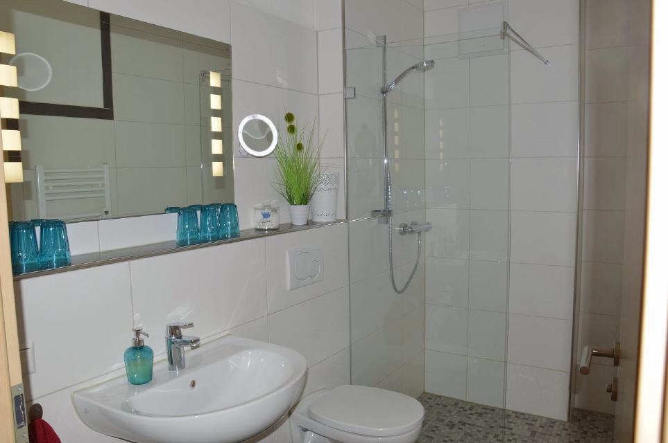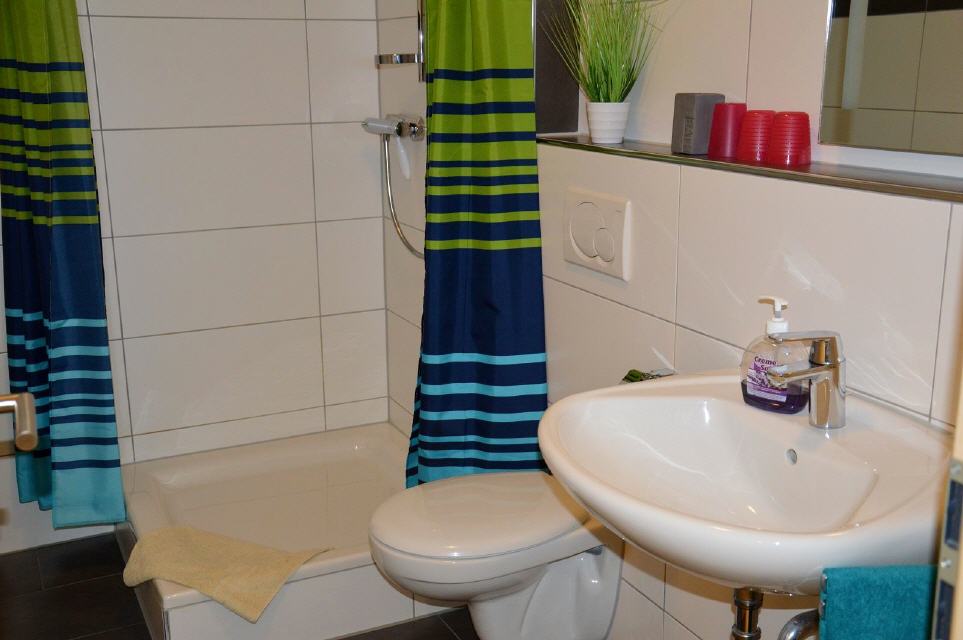 Dusche, WC, Handwaschbecken, Fön, Duschtücher