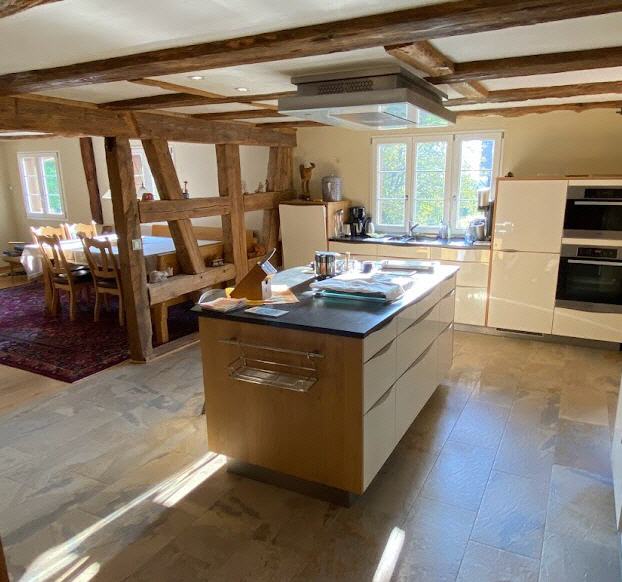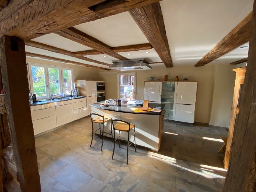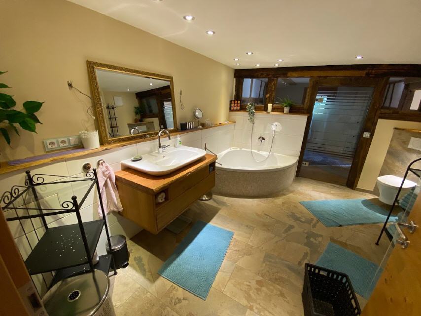 Unsere Ferienwohnung liegt im schönen Reichenbächle in Sexau bei Freiburg / Emmendingen in absolut ruhiger Lage. Die Fewo ist in einem restaurierten Fachwerkhaus und hat 120 Quadratmeter. Sie bietet 2 Schlafzimmer mit jeweils 2 Doppelbetten und einem großen, offenen Wohn-Essbereich mit Kamin, eine moderne Einbauküche (komplett eingerichtet) sowie eine große, überdachte Terrasse mit Grillmöglichkeit. Zusätzlich ist ein luxuriöses Bad mit ebenerdiger Dusche und einer großen Badewanne vorhanden. Kinderbettchen und Hochstuhl auf Anfrage. Bettwäsche und Handtücher werden gestellt.