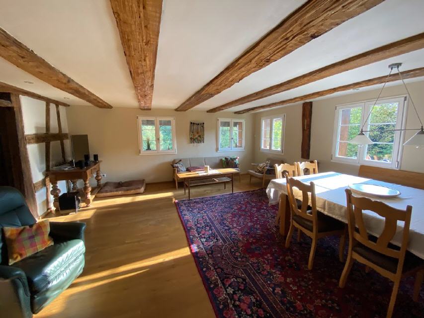 Unsere Ferienwohnung liegt im schönen Reichenbächle in Sexau in absolut ruhiger Lage - am Eingang zum Elztal, unweit von Freiburg und Emmendingen. Die Fewo ist in einem restaurierten Fachwerkhaus und hat 120 Quadratmeter. Sie bietet 2 Schlafzimmer mit jeweils 2 Doppelbetten und einem großen, offenen Wohn-Essbereich mit Kamin, eine moderne Einbauküche (komplett eingerichtet) sowie eine große, überdachte Terrasse mit Grillmöglichkeit.