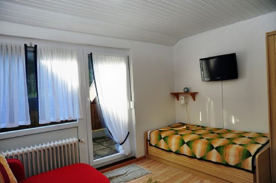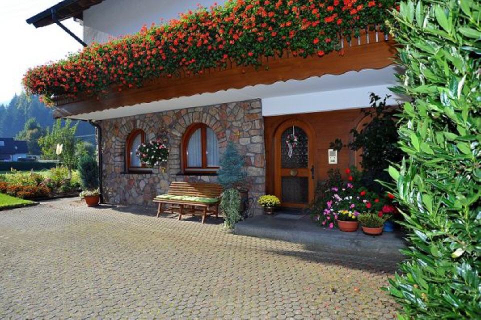 Unser gepflegtes Haus liegt zentral und unmittelbar am Wald sowie in Schwimmbadnähe. Wir bieten komfortabel und modern eingerichtete Ferienwohnungen und Doppelzimmer sowie einen Aufenthaltsraum (Sat-TV, Kühlschrank, reichhaltiges Frühstück). Die sonnige Terrasse mit Liegestühlen und Tisch ist neu gestaltet. Genießen Sie vom Balkon einen herrlichen Blick auf Wiesen und Wald.