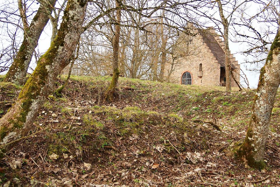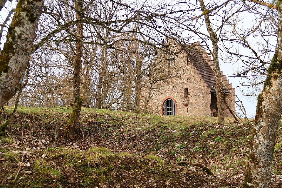 An seinem Fuß führt ringsum der Geografische Lehrpfad. Wir steigen geradeaus hinauf auf dem Historischen Pfad Fürstenberg zur Augustinus-Kapelle mit dem markanten Staffelgiebel. Auf dem Gipfel des Fürstenbergs (918 m) befinden sich ein Rastplatz sowie eine Panoramatafel für die Aussicht: links auf den bewaldeten Längeberg, im Süden über das Hondinger Tal zum Randen, dann folgt das Dorf Riedböhringen, dahinter der Eichberg bei Blumberg. Im Westen können wir bei guter Sicht die Türme auf dem Feldberg erkennen, unter uns das Dorf Behla.