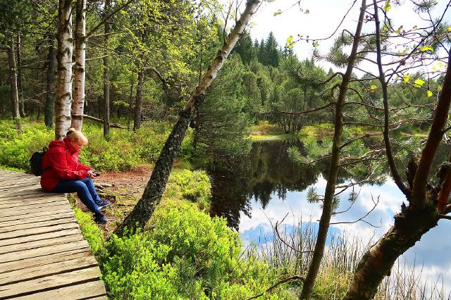 Überall wachsen Torfmoose, dicke Polster, die wie Schwämme mit Wasser vollgesogen sind. Weich ist sein Moorwasser. Auch gibt dieses Hochmoorgebiet wunderschöne Wintermotive ab. Reif, Eis und Schnee verwandeln die bizarren Gehölzgruppen in märchenhafte Naturgestalten. Eine geradezu magische Naturschönheit ist der See, wenn Nebel über ihn zieht. Einzigartiger Zauber, wenn die Nebelschwaden wie ein Seidenschleier über dem See hängen.