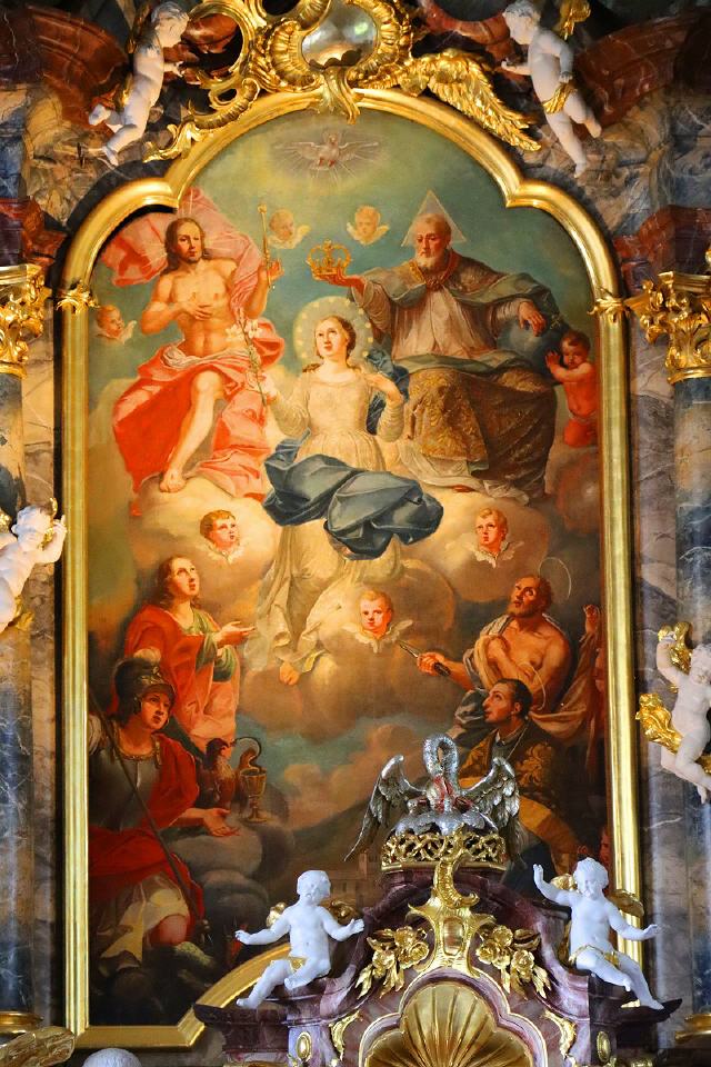 Der Altaraufbau des Hochaltars wurde 1914 von Angelo Valentin, einem Holzbildhauer aus Offenburg geschaffen, der das wesentlich ältere Altarbild in seine Arbeiten integrierte. Der Zeitpunkt der Entstehung des Altarbildes und der Bilder der beiden Seitenaltäre sowie die Namen der Künstler sind nicht bekannt. Belegt ist, dass in den Jahren 1748/1749 drei Bilder für die umgebaute und erweiterte Kirche angeschafft wurden, wahrscheinlich für einen früheren Hochaltar und ehemalige Seitenaltäre. Möglicherweise sind die heutigen Altarbilder mit diesen identisch.