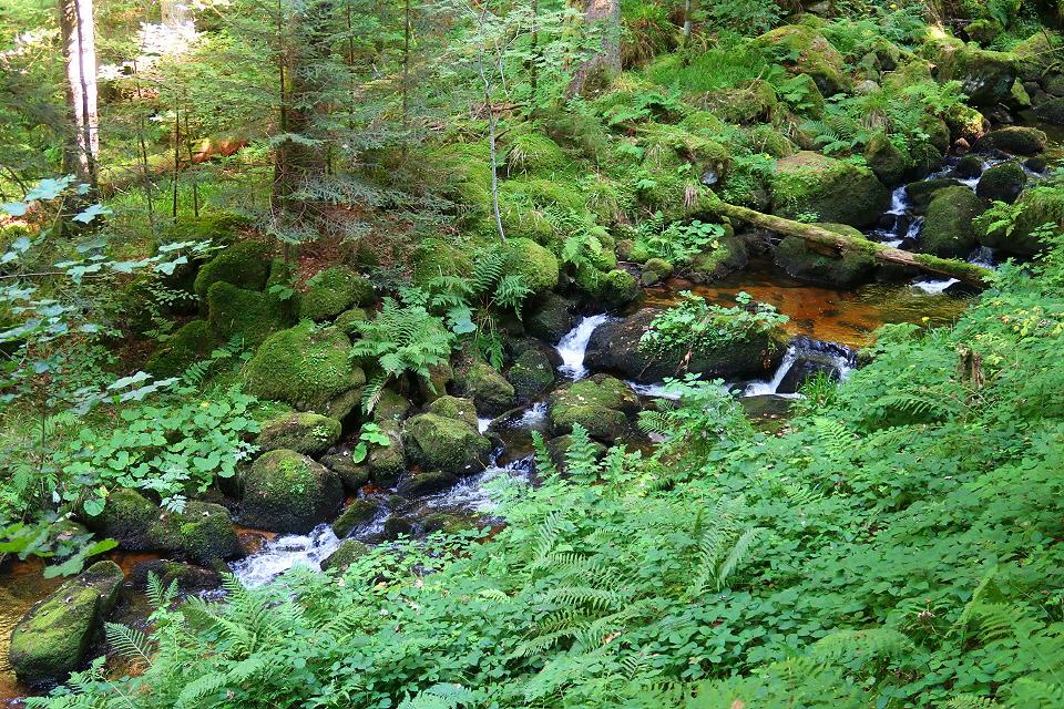 Vom Parkplatz Mühlebühlbrücke Rohrhardsberg an der L 109 (Elztal-Schonach) aus geht es nach wenigen Metern Elz-aufwärts über eine Holzbrücke über die Elz. Was hier als kleines Bächlein beginnt, begibt sich auf eine 121 km lange Reise bis zum Rhein.