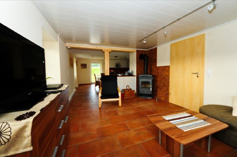 Unsere größte Ferienwohnung mit 100 Quadratmetern bietet in einem geräumigen Wohnzimmer mit einem Holzofen eine tolle Atmosphäre zum Wohlfühlen. Über zwei Stockwerke bleibt in der Wohnung mit zwei Bädern und drei Schlafzimmern genügen Platz zum entspannen. Auch eine eigene Waschmaschine steht in der Wohnung zu Ihrer Verfügung. Bettwäsche und Handtücher sind vorhanden und im Preis inklusive.