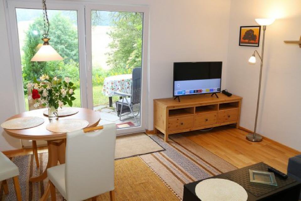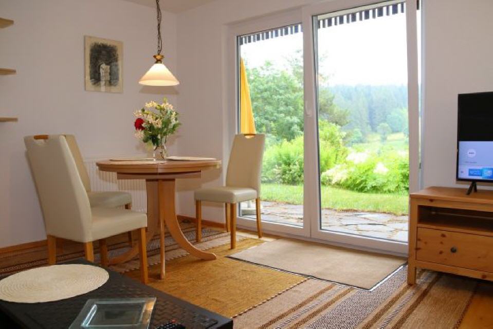 Genießen Sie eine unbeschwerte Zeit abseits von Lärm und Verkehr in unserer freundlichen, hellen und frisch renovierten Ferienwohnung (Nichtraucher, keine Haustiere). Sie ist geeignet für bis 5 Personen und komplett eingerichtet. WLAN ist vorhanden, ebenso eine Liegewiese mit herrlichem Panoramablick. In sonnenverwöhnter Lage, umgeben von Wald und Wiesen, bietet Ihnen unsere Ferienwohnung einen idealen Ausgangspunkt für Wander-, Bike-, Langlauf- und Schneeschuhtouren.