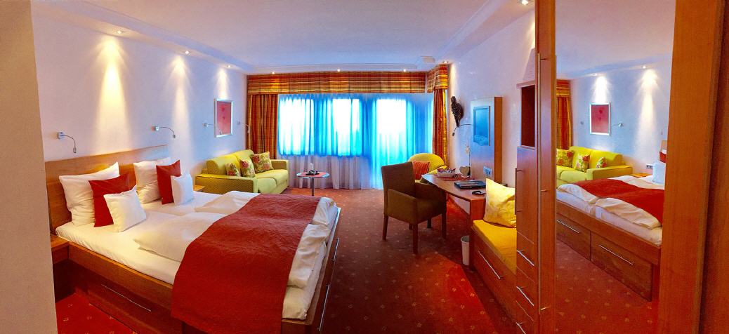 Doppelzimmer JS – ca.32 qm, Bad oder Dusche/WC, Frühstück, Balkon oder Terrasse, Minibar, Telefon, sicheres GREEN-WIFI, Minibar, Kabel-TV, Safe, Bademantel, Saunatücher, 1-2 Zusatzbetten möglich, Nutzung der hoteleigenen Erholungseinrichtungen