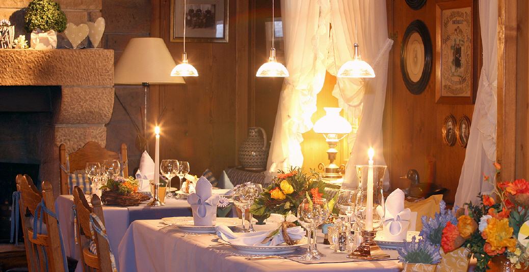 Atmen Sie die gute Schwarzwald-Luft und speisen Sie in unseren liebevoll dekorierten Stuben in Verbindung mit unserer Ochsen-Halbpension, Vier-Gang-Wahlmenü am Abend oder unserer ¾-Pension, die Halbpension mit Kaffee und Kuchen. Ebenfalls steht Ihnen unsere à la carte zur Wahl.