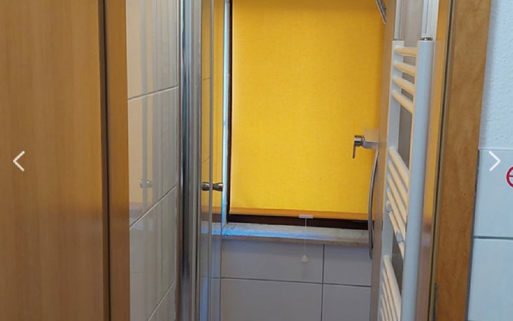 Das Monteurzimmer (Zimmer 2) bietet jeden Komfort, den man zum Aufenthalt erwartet. Dusche und WC sind über einen gemeinsamen Flur erreichbar. Im Zimmer befindet sich eine kleine Sanitärecke. Das Fenster des Zimmers zeigt zur Anliegerstraße.