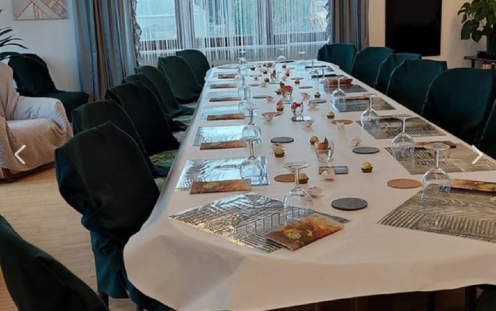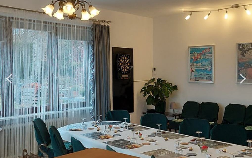 Der Empfangssalon ermöglicht Veranstaltungsmöglichkeiten. Ihre Gäste können sich dort gemütlich treffen, sich unterhalten, gemeinsam speisen oder spielen. Der Empfangssalon kann höchstens für 5 aufeinanderfolgende Tage gebucht werden. Als Option stellen wir, nach Anfrage, Tafelgeschirr (inkl. Nachspülung), Getränke, Imbiss, Catering, Videoanlage, Karaokeanlage, Tischtennisplatte, Dartspiel, Gesellschaftspiele zur Verfügung. Eine Verlängerung der Belegungsdauer nach 21 Uhr kann nur ausnahmsweise nach Anfrage und Aufpreis erfolgen. Haben Sie einen besonderen Wunsch? Zögern Sie nicht, uns zu kontaktieren!