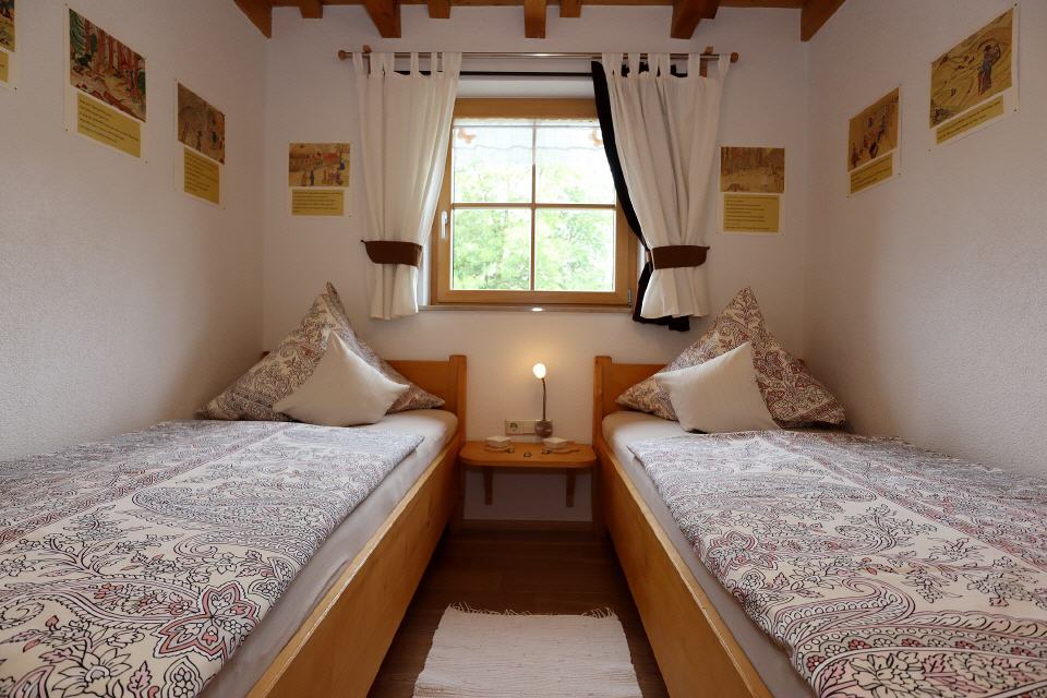 2 getrennte Schlafzimmer (ein Zimmer mit Doppelbett, ein Zimmer mit zwei Einzelbetten, welche auch für Erwachsene geeignet sind)