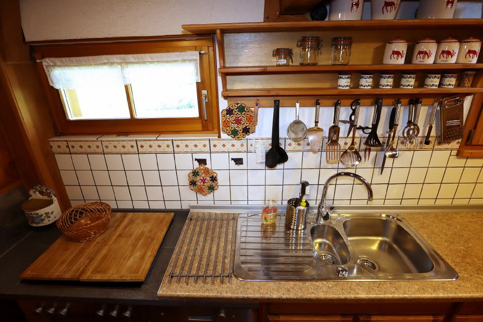 Das freistehende Ferienhäuschen bietet mit seinen 58 qm Wohnfläche Platz für 4 bis 6 Personen. Im unteren Stockwerk liegen die voll ausgestattete Küche sowie eine urige Wohn- und Essstube mit Sat-TV. Hier trifft sich die Familie zum gemeinsamen Essen und gemütlichen Beisammensein. Im oberen Stockwerk befinden sich neben dem Bad zwei separate Schlafräume. Ein Zimmer davon ist mit einem Doppelbett und das andere Zimmer mit zwei Einzelbetten möbliert. Vor dem Ferienhaus lädt eine große Liegewiese mit Freisitz und Grillmöglichkeit zum sonnenbaden, spielen und gemeinschaftlichen Essen ein.