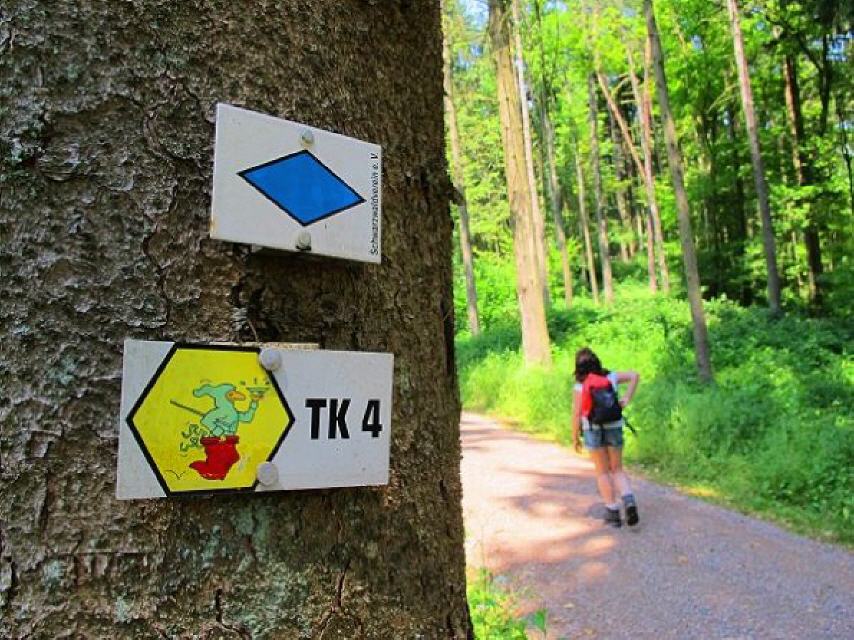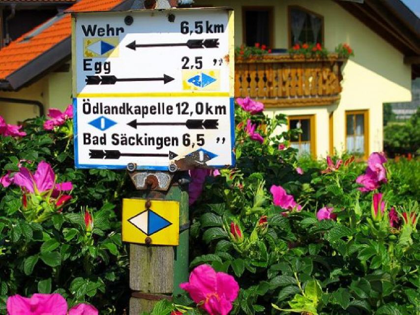 Beginnen wir die vier- bis fünfstündige Bergtour beim Bad Säckinger Bahnhof und folgen von dort aus der blauen Raute des Schwarzwaldvereins sowie dem blauen “Ö” auf weißem Grund (Ökopfad) über die “Badmatte” und das “Kurzentrum” durch die Stadt.