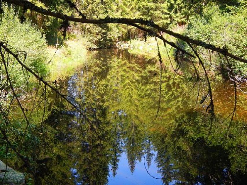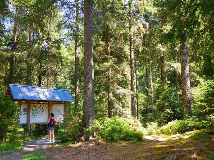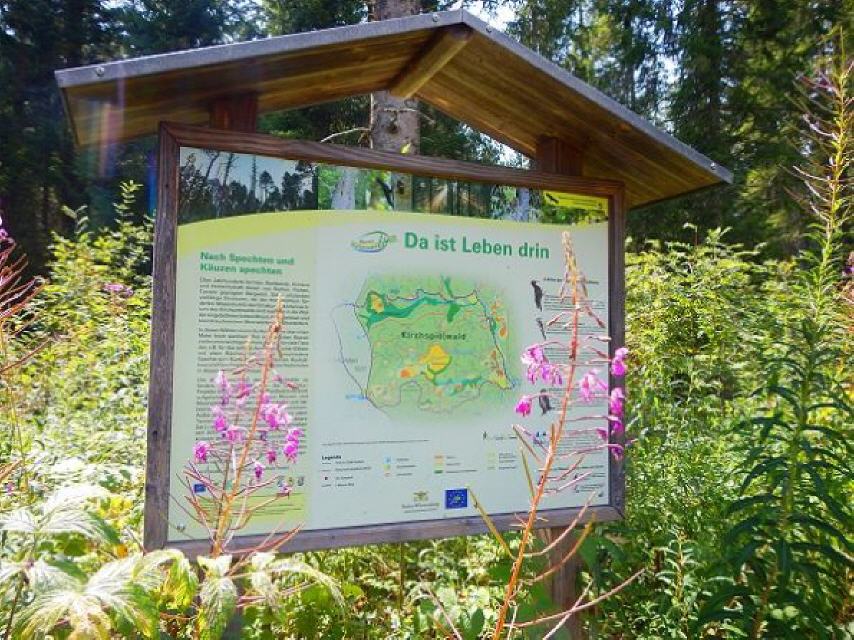 Der Weg führt in das Fohrenmoos, das Tubenmoos und über das Geißhaltermoos zum Schwarze Sägemoos. Hierbei handelt es sich um typische Niedermoore mit Hochmoorstrukturen (Moorkiefernwald). Schließlich treffen Sie auf den Schilderstandort “Schwarzwasen” und belangen schließlich auf das alte Holzsägewerk, die “Schwarze Säge”.