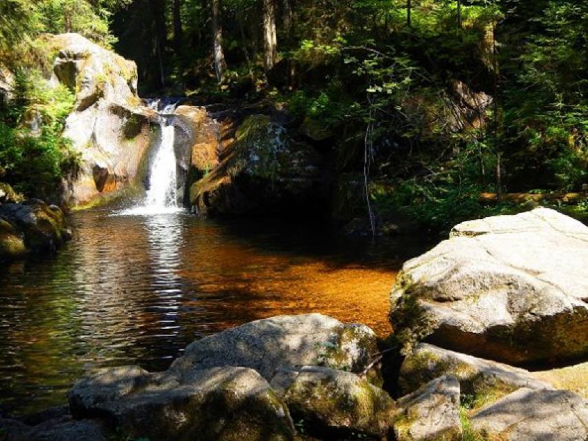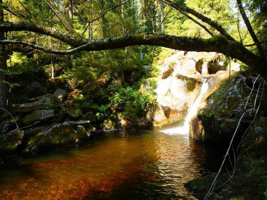 Fast zehn Kilometer ist der 7-Moore-Pfad in Herrischried lang. Er bietet eine einzigartige Flora und Fauna und lädt auf halber Strecke sogar zu einem Bad ein – in einer eiszeitlichen Gletschermühle. Der Wasserfall mit kleinem See ist ein Höhepunkt auf dem wunderschönen Rundweg. 2,5 bis 3 Stunden reine Gehzeit sollte man sich allerdings schon einräumen.