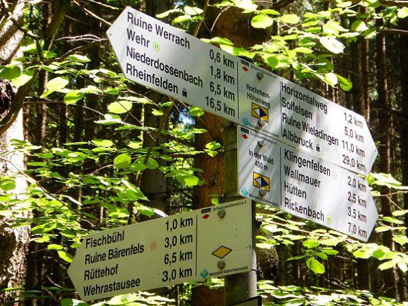 In Wehr am Hochrhein bietet sich Wanderern eine rund 9,7 km lange Burgruinen-Wanderung an. Sie erreicht eine Höhendifferenz von 490 Metern und beansprucht etwa drei Stunden Gehzeit. Gutes Schuhwerk sowie Vesper und Getränke werden empfohlen. Die Wanderung führt zu bedeutenden Orten der Regionalgeschichte und bietet attraktive Aussichtgspunkte. Start ist bei der Tourist-Information beziehungsweise Gemeindehalle im Ortszentrum von Wehr.