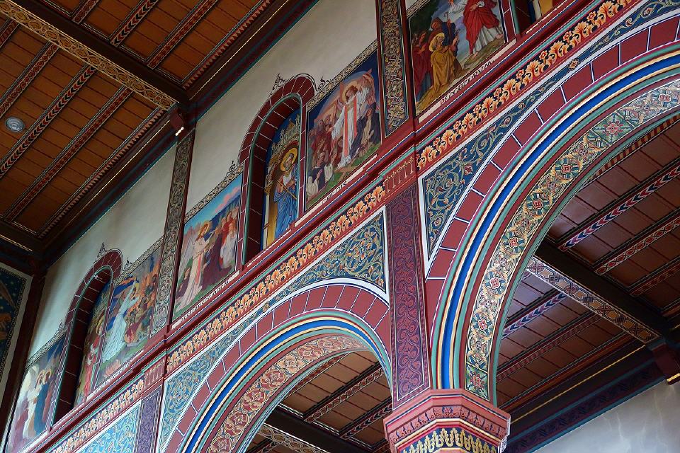 Den Schlussstein des Chorgewölbes ziert das Wappen von Papst Leo XIII., in dessen Amtszeit von 1878 bis 1903 die Simmler’sche Innenausstattung fiel.