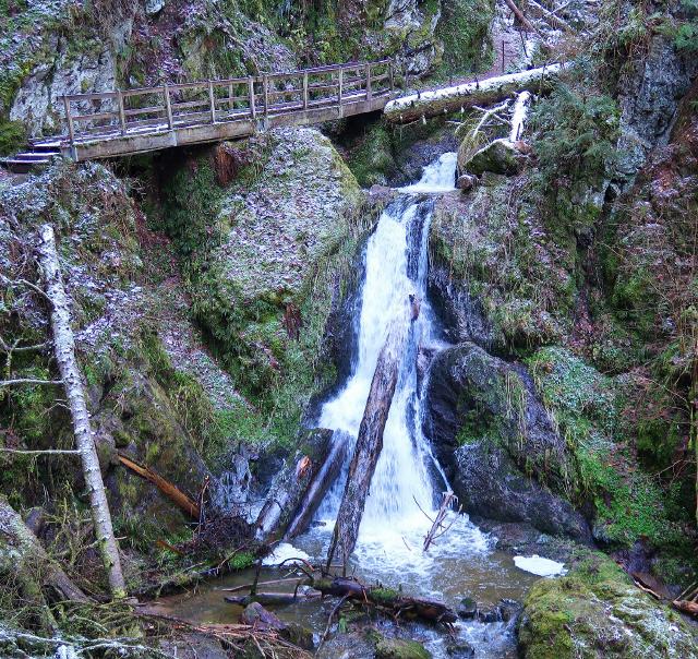 Es ist ein kurzer, aber spektakulärer Wanderweg im Schwarwald. Der Einstieg in die wildromantische Lotenbachklamm, mit ihren zahlreichen kleinen Wasserfällen, liegt direkt gegenüber dem Wanderparkplatz an der B315 zwischen Gündelwangen und Bonndorf. Auf steilem Pfad gelangst Du zum Wanderparkplatz Schattenmühle. Es sind Trittsicherheit und festes Schuhwerk erforderlich. Die Schwindelfreiheit hält sich in Grenzen, da einige Brücken und Holzstege auf den Hauptwanderwegen des Naturschutzgebietes unterhalten werden, die selbst Kindern das Wandern durch die einzigartige Wutachschlucht und ihren engen Nebentälern ermöglichen. Einkehrmöglichkeit bietet das Gasthaus Schattenmühle. Nach einer kleinen Erfrischung und Stärkung wanderst Du die Klamm wieder bergauf, zurück zum Wanderparkplatz, an dem du gestartet sind.