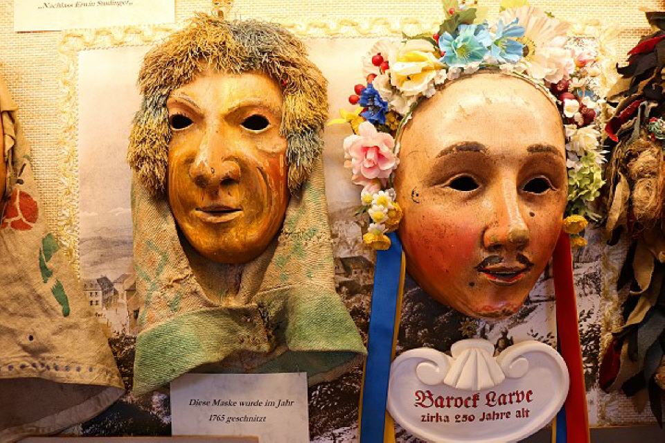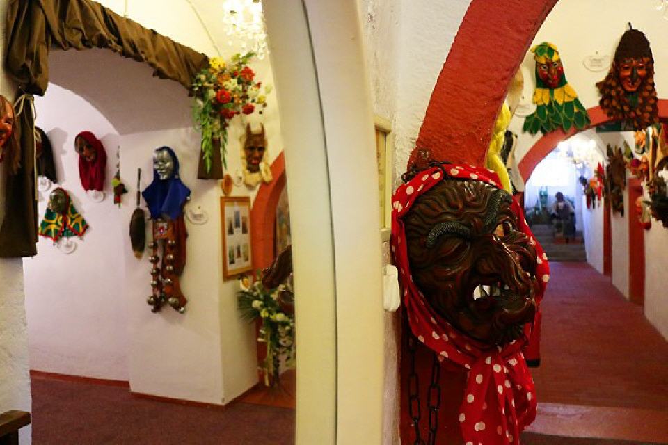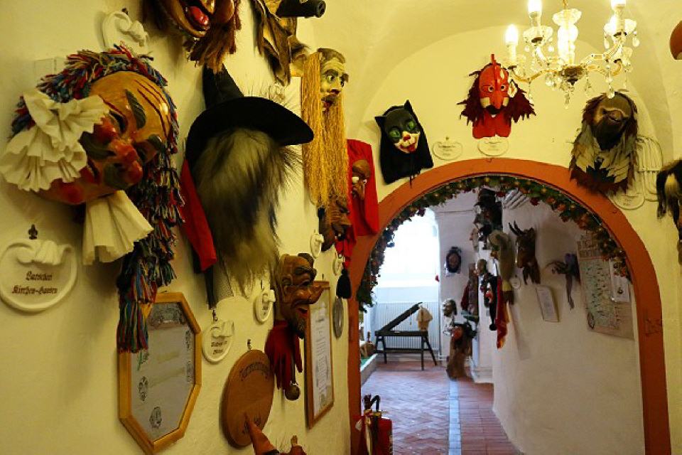 Im Schloss-Gewölbe befinden sich über 300 originale Masken oder Larven aus der gesamten Fasnachtslandschaft. Besondere Attraktionen sind die “Internationale Stube” – Schweiz, Frankreich, Deutschland, Venedig und Tirol – sowie eine “Clown-Stube” für Kinder zum spielen. Kunstvolle Häsmalerei kann auf großen Schautafeln bestaunt werden.