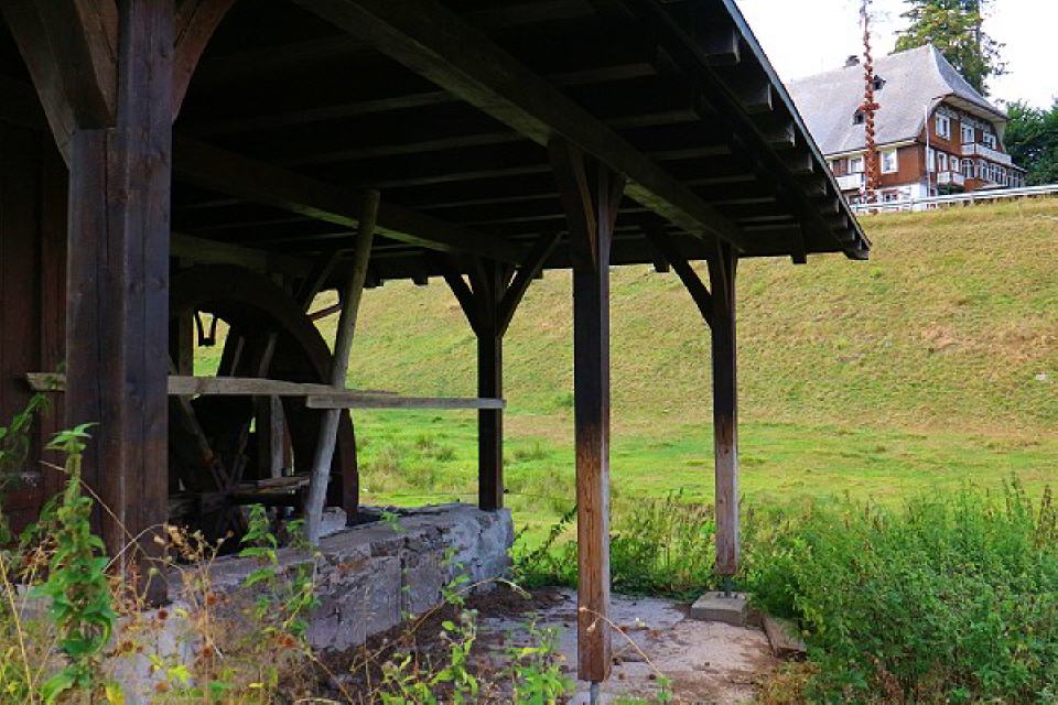 Als Antrieb für seinen erfundenen Skilift verwendete Robert Winterhalder die Wasserkraft seiner Mühle unterhalb des Hauses. Diese Mühle hatte er schon um 1900 zu einem kleinen Wasserkraftwerk umgebaut. Die erzeugte Kraft wurde über ein endloses Drahtseil in das Obergeschoss seines Hauses gebracht, wo Heu und Stroh lagerten. Diese Art Transmission bildete im Prinzip die Grundlage für den Lift. Unterhalb des Hauses befand sich ein Weiher, der mit einem Wehr verschlossen war.