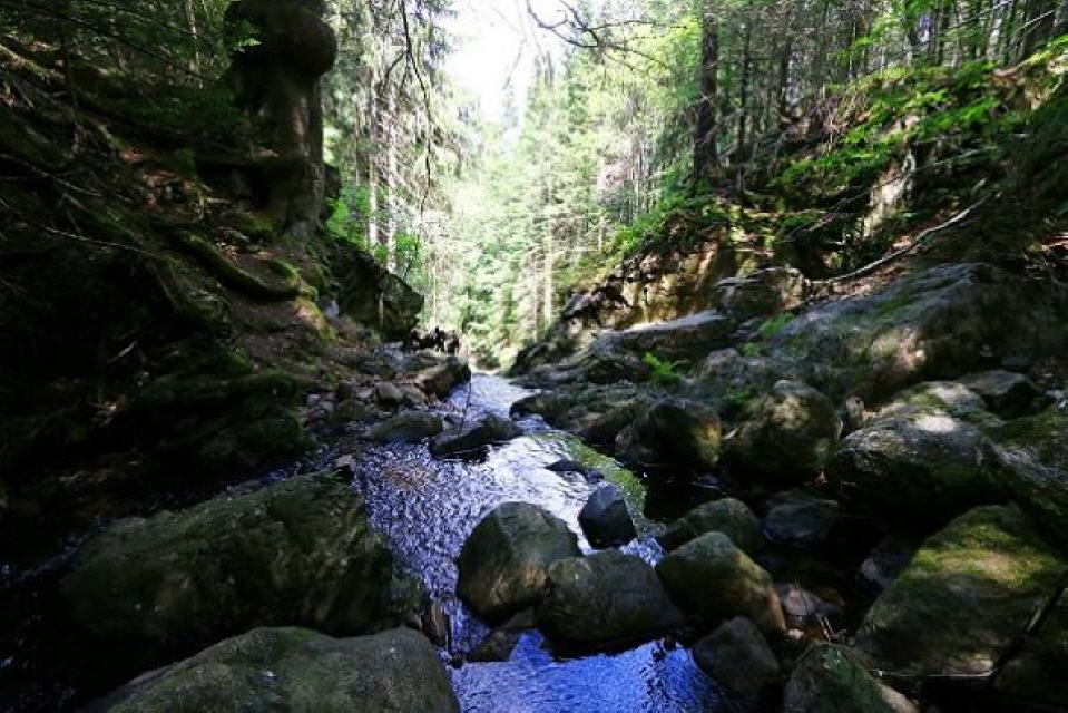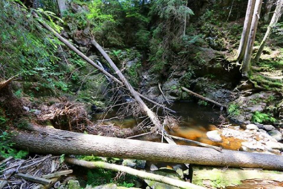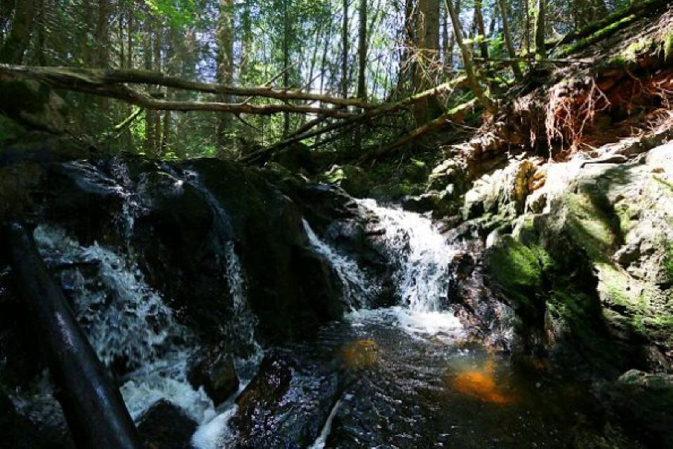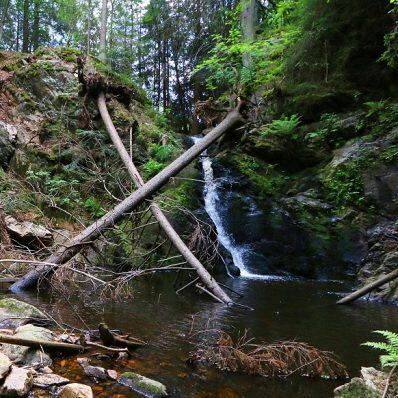 Von hier aus starten wir die Tour auf der Haslachstraße in Richtung Osten durch eine herrliche Wiesenlandschaft. Bereits beim Weiher können tliche Kunstwerke der hier lebenden Biber bestaunt werden. Ein paar 100 m weiter rechts in den Lenzkircher Weg abbiegen. Nach 1,1 km erreichen wir einen Wald; kurz danach links über einen schmalen Wanderpfad in Richtung Schlucht hinab laufen. Der Weg zum Wasserfall ist ausgeschildert.