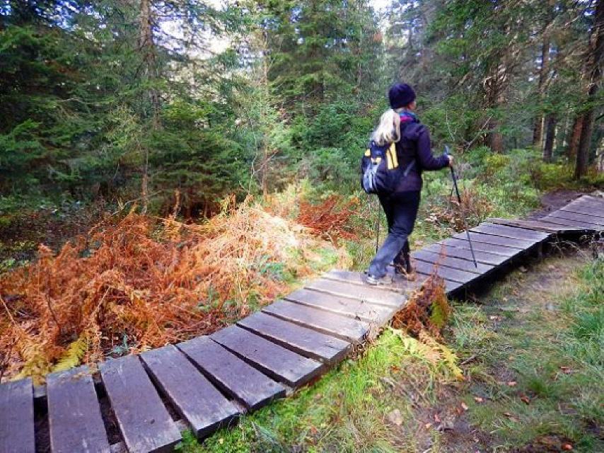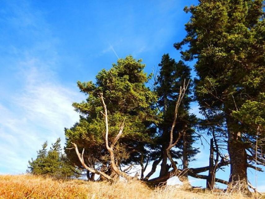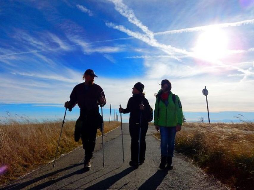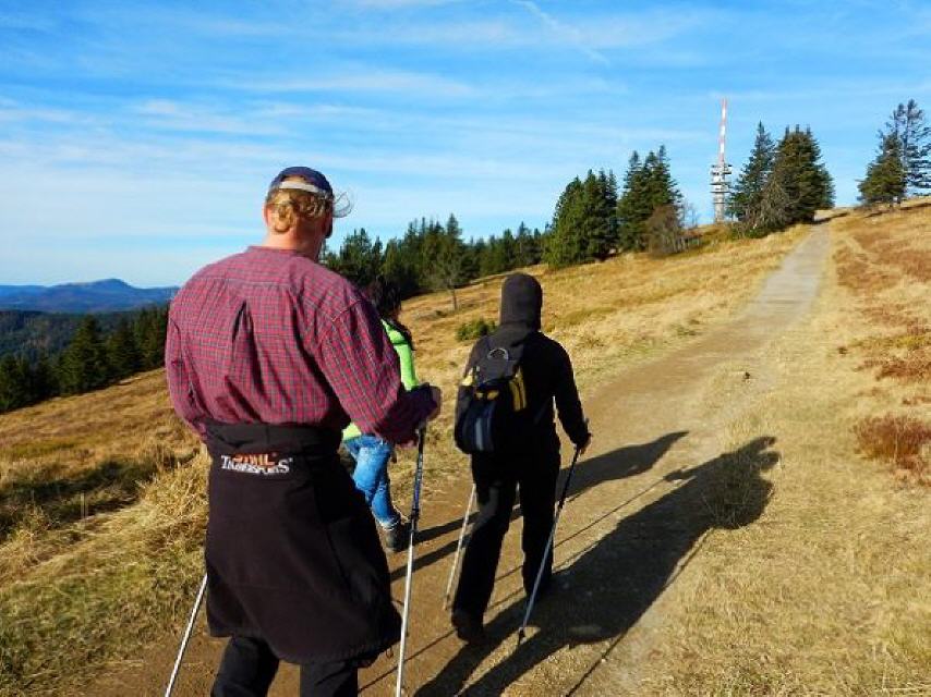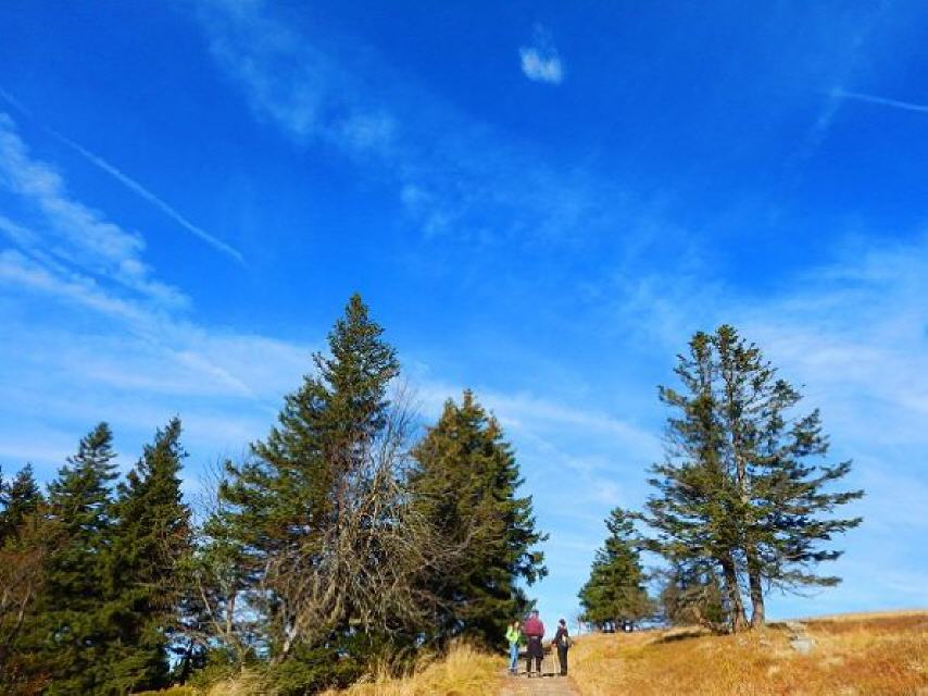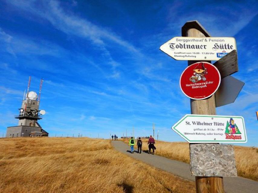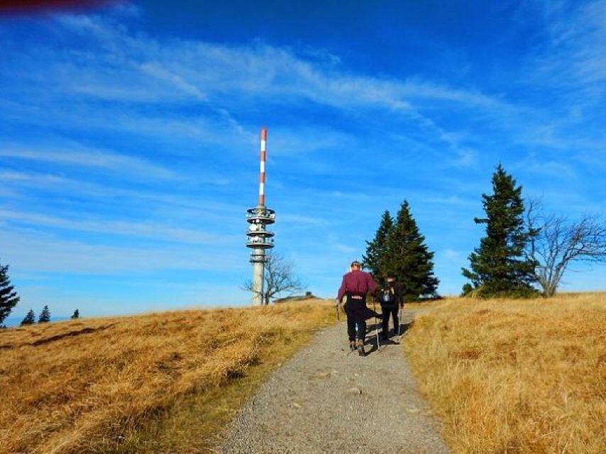 Vom offiziellen Startpunkt, dem “Haus der Natur”, geht es bergauf in Richtung Panoramaweg. Sobald wir die ersten Höhenmeter überwunden haben, werden wir bei guter Witterung mit einer atemberaubenden Fernsicht auf die Vogesen im Westen und die Schweizer Alpen im Süden für die Aufstiegsmühe belohnt. Den Besuch des Bismarckdenkmals und der Bergbahn können wir uns ersparen, zumal sich hier sowohl in den Sommermonaten als auch in der übrigen Jahreszeit die meisten Feldbergtouristen aufhalten.