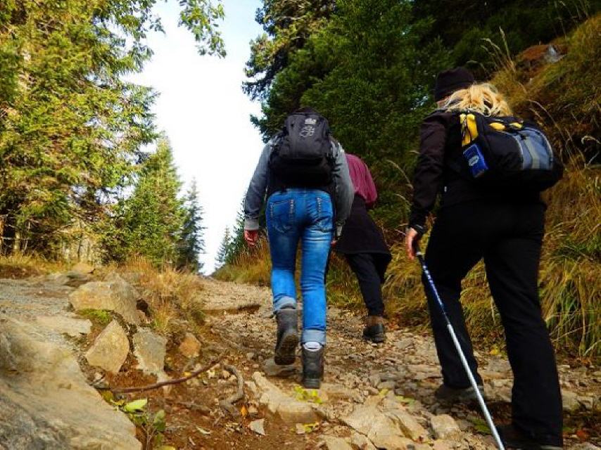 Nach der Vesperpause folgen wir der Markierung des Feldberg-Steigs und gehen von nun an im Zick-Zack-Kurs teils steil bergauf bis Startpunkt beim “Haus der Natur”.
