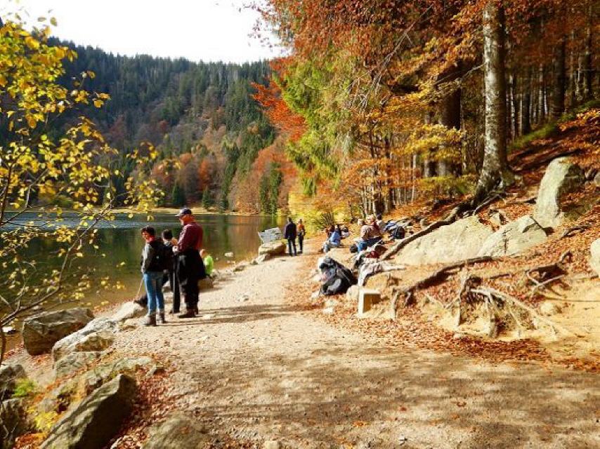 Voraussetzung für das Vesper in der einzigartigen, wunderschönen Landschaft ist allerdings, ein Vesper und Getränke mitgenommen zu haben. Als Belohnung winkt eine stressfreie Pause inmitten der überwältigenden Kulisseund in einer einmalig schönen Natur sowie die Ruhe des Sees mit den dahinter liegenden Steilhängen des Feldberges und dem Bannwald.