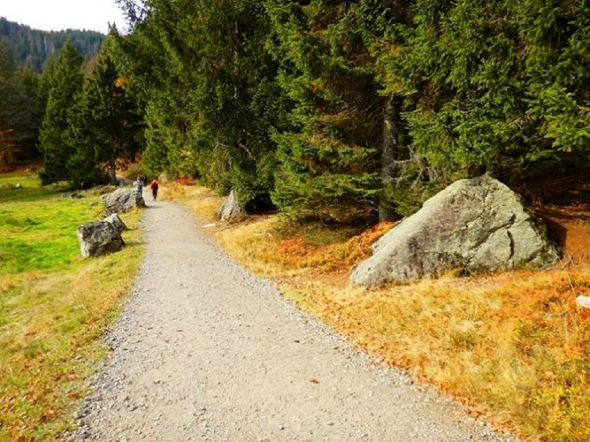 Wer sich dem Rummel zum Start des auf großen Teilen sehr schönen Weges schon zu Beginn entziehen möchte, dem empfehle ich lieber den Einstieg beim Parkplatz Alpersbach bei Hinterzarten auf der anderen Seite des Feldberges. Das hat den Vorteil, sich nicht in die Autoschlangen (Parkplatzgebühr) geduldig einreihen zu müssen und erspart sogar ein beträchtliches Stück Fahrtstrecke und viel, viel Zeit.