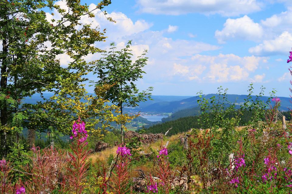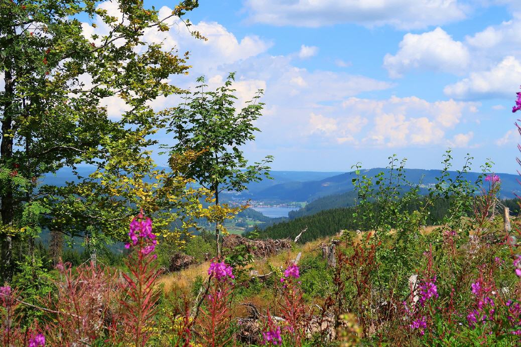 Der Zweiseenblick oberhalb von Neuglashütten am Feldberg bietet die Möglichkeit, gleich zwei große Schwarzwaldseen auf einmal zu sehen: den Titisee und den Schluchsee. Er liegt auf 1292 Metern Höhe. Der Rundweg misst knapp 10 km; die Gehzeit beträgt etwa 3 Stunden. Schöne Aussichten und Hochschwarzwälder Naturerlebnis werden wir vom Schwarzenbachweg, Lachenrüttenweg, Zweiseenblickweg und dem Philosophenweg aus haben. Es empfiehlt sich, den Fotoapparat mitzunehmen. Denn es bieten sich grandiose Fernsichten.