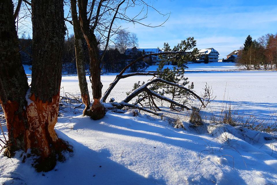 Durch das Winterparadies bei Hinterzarten im Hochschwarzwald führt eine aussichtsreiche Rundtour um die 1015 m hohe Kesslerhöhe. Die Tour misst gerade mal knapp 6 km und ist in 2,5 Stunden gut zu schaffen. Start ist beim Kurhaus in Hinterzartens Ortsmitte. Von dort geht es in südlicher Richtung zunächst durchs Dorf, um schließlich am Waldrand hinauf entlang der Kesslerhöhe zu gelangen. Ab hier beginnt die Winterwanderung durch die herrliche Schneelandschaft.