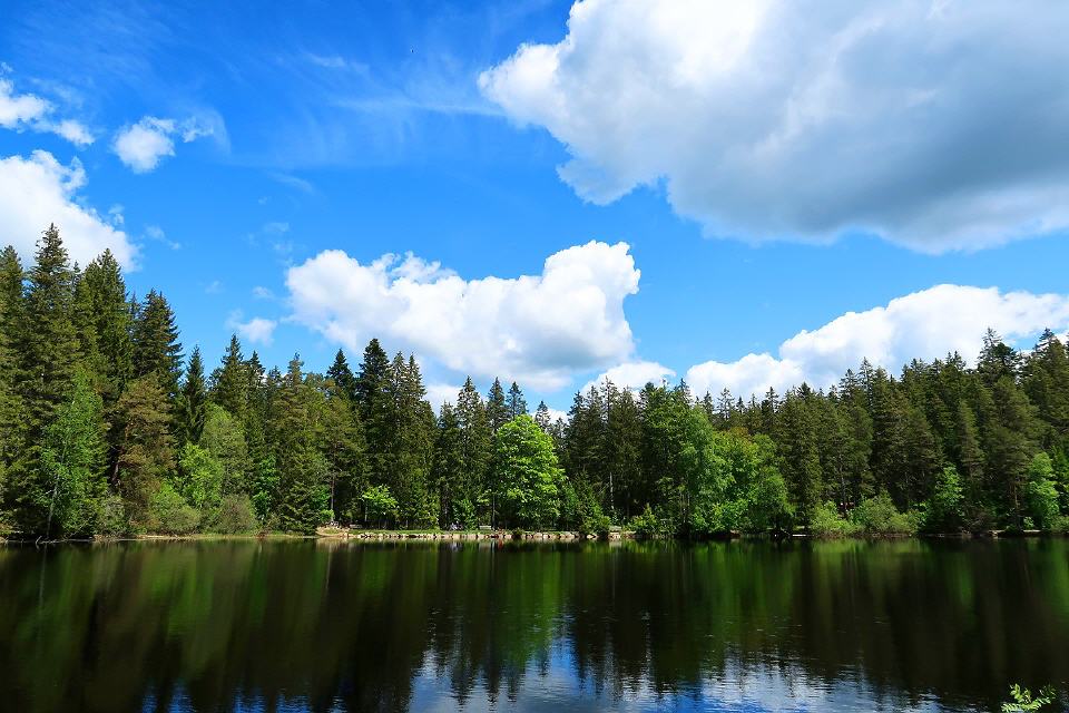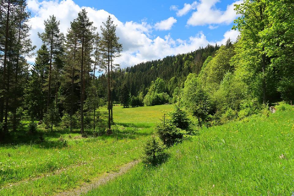 Dein nächstes Zwischenziel ist der versteckt im Naturschutzgebiet liegende Mathisleweiher. Hier kannst Du eine gemütliche Pause einlegen. Gestärkt gehst Du dann auf dem ansteigenden Weg bis zum Häuslebauernhof, wo Du den grandiosen Blick auf das Feldbergmassiv genießen kannst. Am naheliegenden Milchhisli kannst Du Dich mit einem gekühlten Getränk erfrischen (kostenpflichtig). Durch den dichten Nadelwald wanderst Du weiter aufsteigend bis auf den Bisten und anschließend auf den Windeckkopf (1209 m). Bei der Bergstation der Thoma-Skilifte kannst Du eine fantastische Aussicht genießen, dieses Mal über Hinterzarten bis zum Hochfirst und zur Weißtannenhöhe.