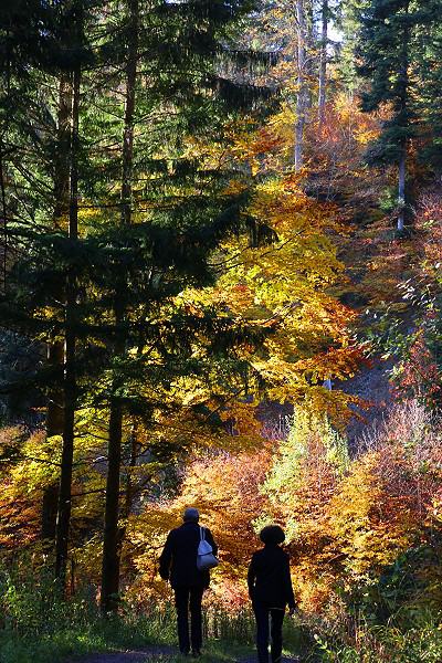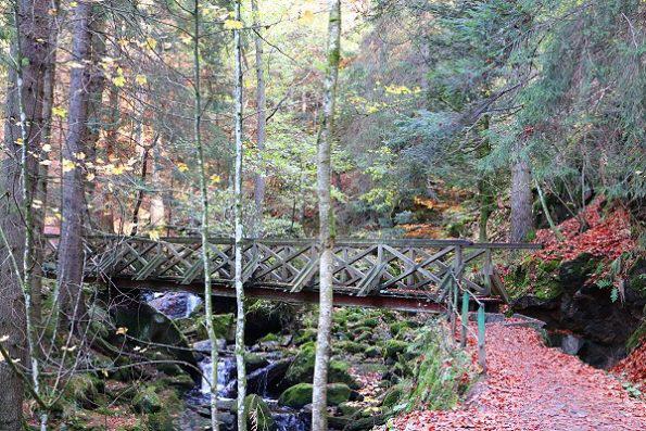 Gut zu Fuß sollte schon sein, wer diese Ganztageswanderung unternimmt. Einmalig schöne Fernsichten, wildromantische Wasserfälle und eine atemberaubende Natur säumen den abwechslungsreichen Weg. Start ist beim Bahnhof in Hinterzarten (Parkplätze). Der Weg führt am Kurhaus vorbei nach Westen bis zur Bahnunterführung und von dort das Löffeltal hinab. Die Markierung ist ein Mühlenrad. Den Rotbach abwärts gehen kommen wir an zwei kleinen Sägewerken vorbei.