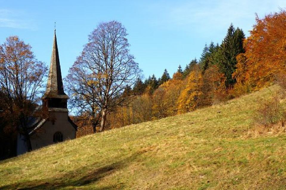 Ein Großteil des Handelsverkehrs zwischen dem Rheintal und dem Bodenseeraum führte über die “Alte Steige”, die noch immer hinter dem Hofgut gut im Gelände erkennbar ist. So wie hier “Unter der Steig” gab es oben bei Hinterzarten (“Ob der Steig”) Ställe sowie Werkstätten für die Spediteure der damaligen Zeit. Die neben der B31 stehende St. Oswald-Kapelle gilt als die älteste Pfarrkirche im Schwarzwald. Die gotische Kapelle wurde im Jahr 1148 eingeweiht. Im Innenraum befindet sich ein sehenswerter Hochaltar aus dem frühen 16. Jahrhundert. Das Gotteshaus kann betreten werden; den Schüssel erhält man im Hotel.