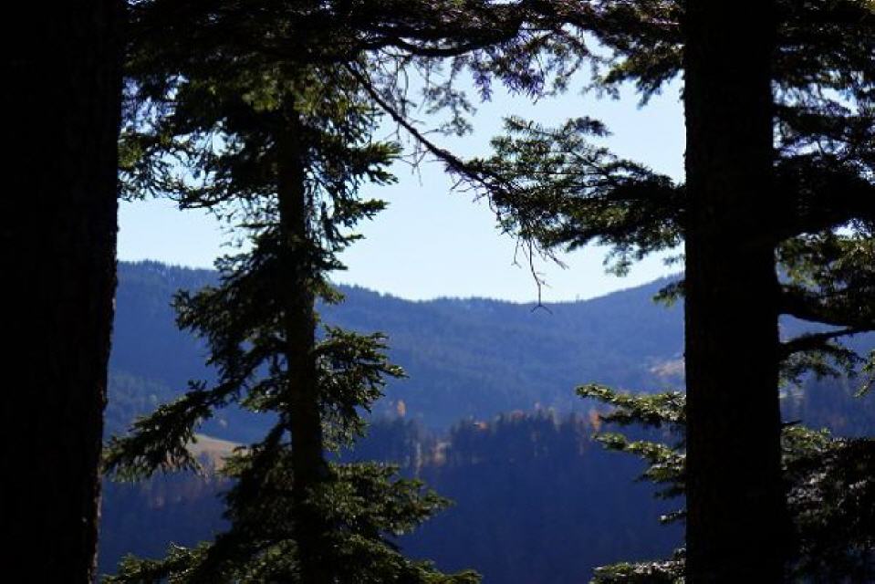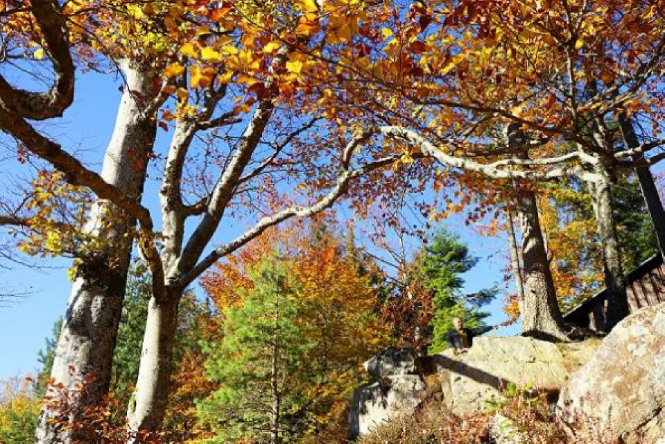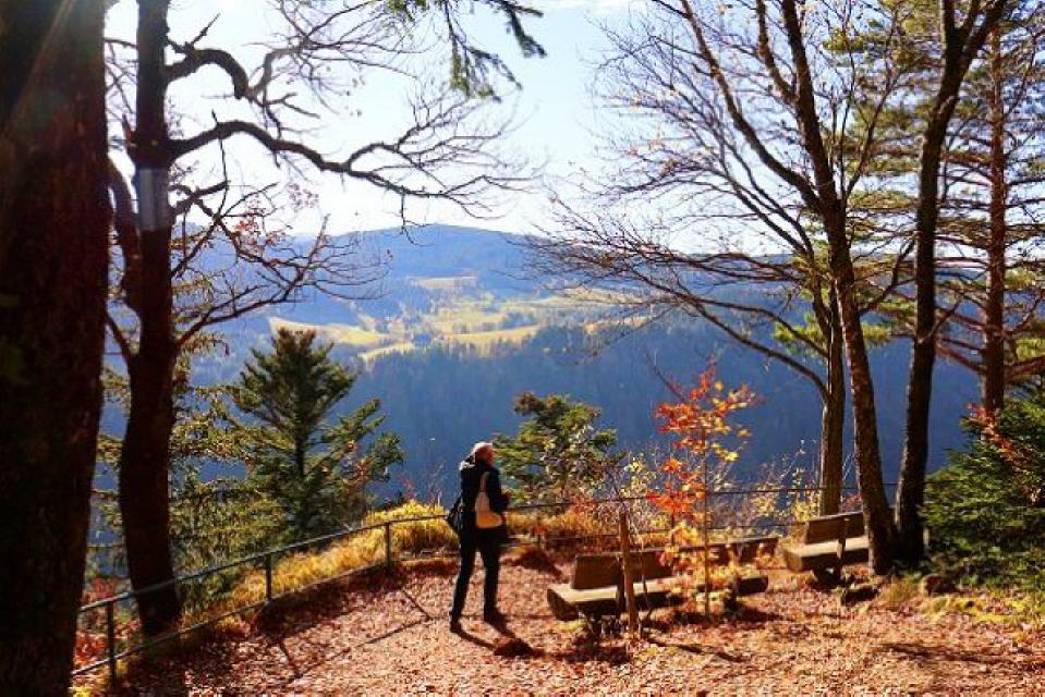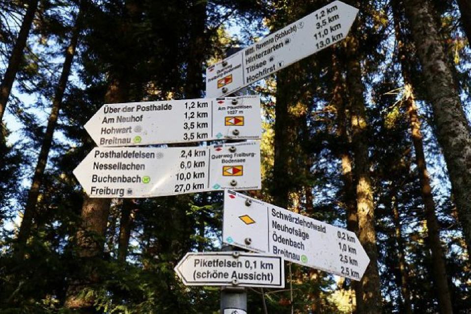 Eine weitere Pause bietet sich einige Kilometer weiter auf dem Posthaldenfelsen. Dort befindet sich auch eine Schutzhütte. Der Posthaldenfelsen liegt direkt oberhalb der Posthalde und des ehemaligen Bahnhofes. Die Gebäude sowie die durchs Höllental verlaufende B31 ist bestens zu sehen. Doch grandios ist der Blick über das schluchtartige Tal hinüber in Richtung Feldberg.