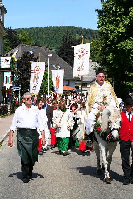 Von nah und fern kommen am Festtagsmorgen Rosse und Reiter, versammeln sich und ziehen – voraus die Chorknaben in roten Gewändern und mit wehenden Fahnen – zum Feldaltar, der bei dem im Friedhof stehenden Eligiuskirchlein auf einem Wiesenplan aufgeschlagen ist. Eine Musikkapelle in schmucken roten Bauernwesten begleitet den Gesang der Gläubigen. Wie blankes Gold funkeln die Instrumente in der Sonne. Fromme Lieder steigen aus hunderten von Kehlen zum Himmel empor. Es singen die Bäuerinnen, die, angetan mit der ernsten Bänderhaube, vom Gebiet um den Titisee herüberkamen, oder jene mit den gestickten blauen und grünen Miedern und dem schmucken Strohhut aus der Breitnauer Gegend.